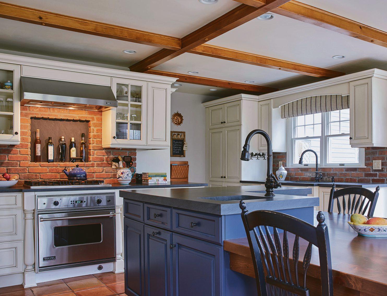 Above:Thisbeautiful kitchenbenefits from colorcourtesyofthe island,chairs, brickbacksplashand terracotta floor tiles. Belowleft: Theintroductionofcolor canbesubtle. In this example, Susan Corvoaddedpatternsand mutedorange furnishingsand pillows to alivingroom space, contrastingthe whitewalls,fireplaceand neutralcouch,yet complementing thehardwoodfloor finish Belowright:The colorblueevokeswater andthe ocean. It’s naturally calming, accordingto interior designer Susan Corvo. Acurrent design trend is “bringingthe outdoors inside”withshadesofgreen andwood finishes.Photos: Susan CorvoRedesign