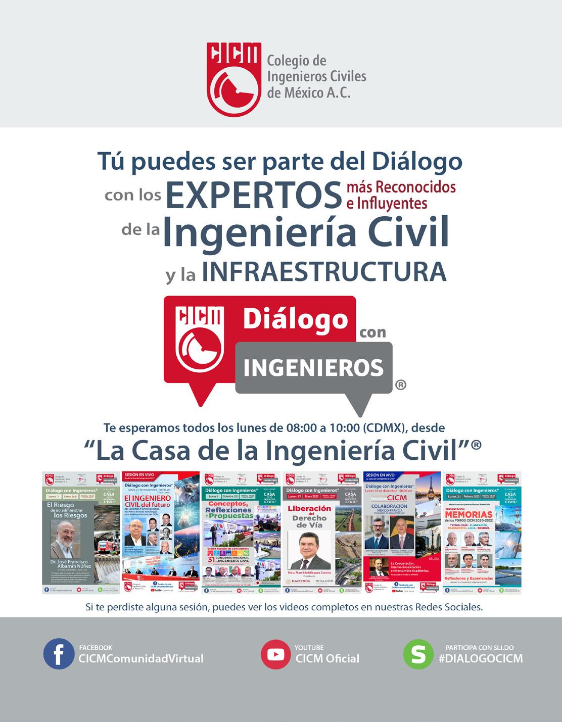 Tú puedes ser parte del Diálogo con los especialistas más reconocidos de la Ingeniería Civil y la Infraestructura de México.