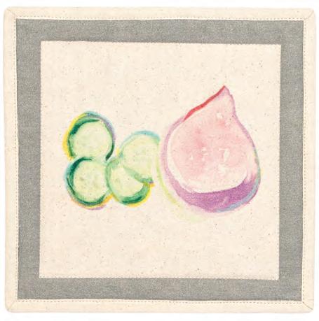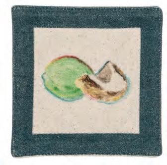 100% organic fair trade cotton canvas trivets constructed by artisans at a social enterprise in India. The artwork was created in ourChicago studio with watercolor and oil pastels. Measures 8” x 8”.