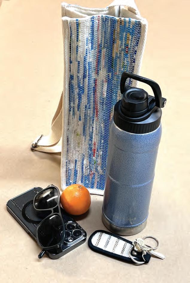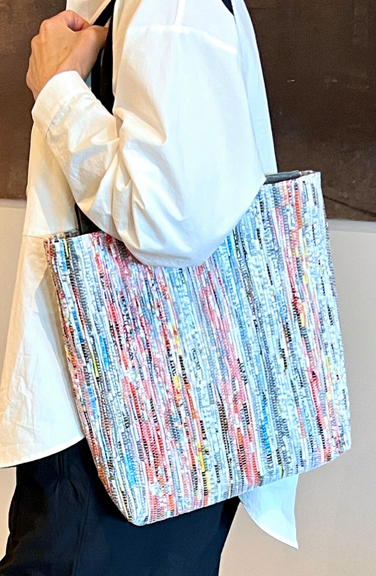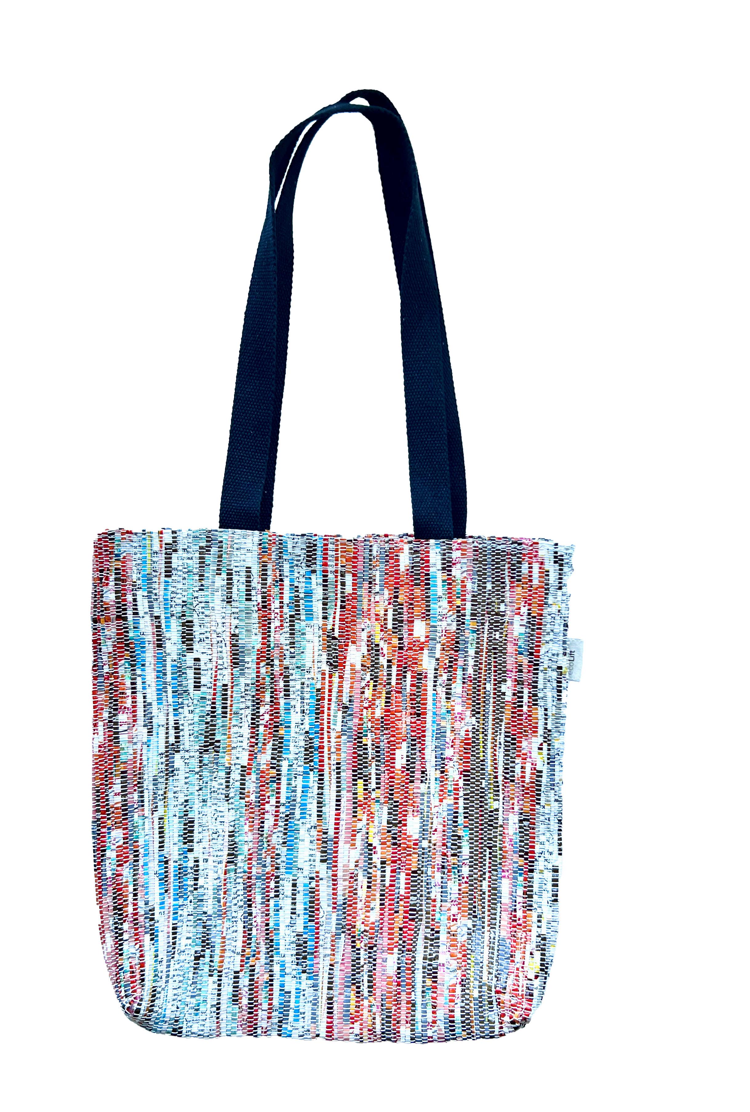Perfect everyday tote handmade from upcycled plastic using a handloom.