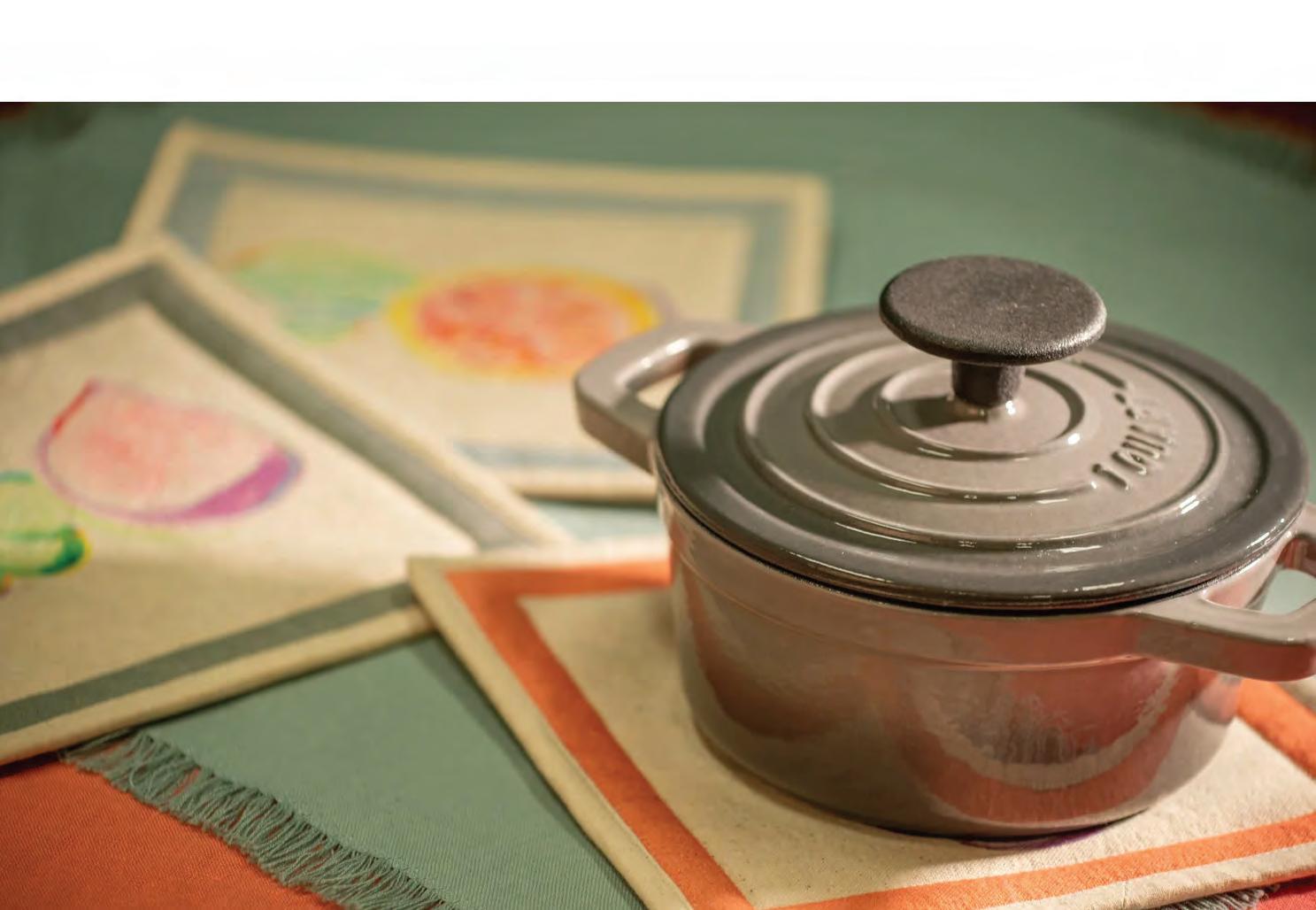 Transform your home with these incredible scents. Garden Gourmet is our chic line of tabletop accessories and candles, inspired by nature. The art and designs were created in our Chicago studio. The images of fruit and botanicals were rendered in watercolor and oil pastels and reproduced on canvas, perfect for a bright, fresh table and kitchen.