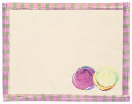 100% organic fair trade cotton canvas placemats constructed by artisans at a social enterprise in India. The artwork was created in our Chicago studio with watercolor and oil pastels. Measures 18” x 13.75”.