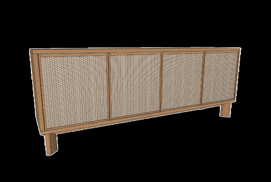 -Multiple Finishes: Included within the collection are light and dark teak woods, fabrics, woven material, and metals.