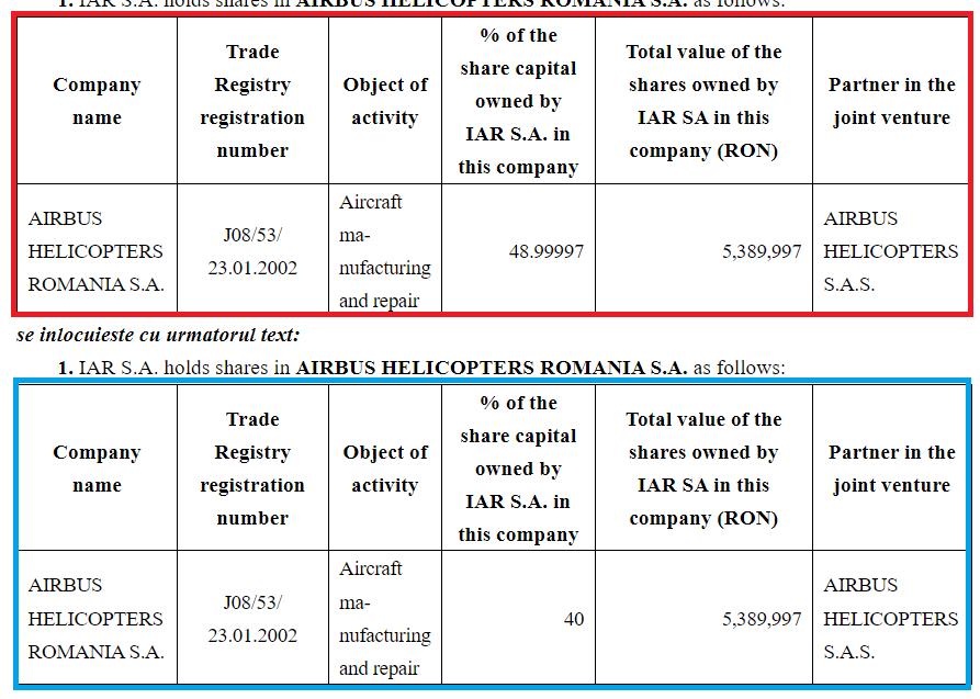 1 IAR S.A. – 1132930 în 2021: cifra de afaceri 329,50 milioane RON; profit: 23,50 milioane RON; datorii: 135,78 milioane RON; angajați: 367 CAEN: 3030 - Fabricarea de aeronave și nave spaţiale. In prezent, Societatea IAR SA este o companie specializata pentru intretinere, reparatii, reparatii capitale (MRO), modernizari pentru elicopterele 330 Puma si 316B Alouette III, activitatea principala desfasurata de societate fiind cea prevazuta la clasa 3316 din Codul CAEN – “Repararea si intretinerea aeronavelor si navelor spatiale“. IAR S.A. dezvolta programe de modernizare, efectueaza revizii periodice, reparatii capitale si incercari la sol si în zbor pentru elicopterele IAR316B Alouette III si IAR330 Puma. Societatea asigura urmatoarele servicii dupa vanzare: asigurarea navigabilitatii, furnizare piese de schimb si reparatii de echipamente, asistenta tehnica; de asemenea, societatea asigura scolarizarea pilotilor si a tehnicienilor beneficiarilor, precum si programe de tip “Follow-on-Support”.