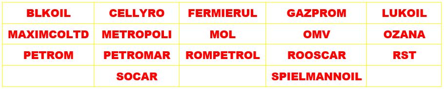 AEROSTAR Bacău (ARS), AVIOANE Craiova (AVIO), IAR Ghimbav (IARV), Romaero (RORX), Turbomecanica (TBM):