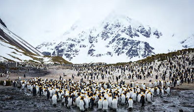 DAY 10–13 Explore South Georgia. The island features majestic mountains, massive glaciers, grassy uplands, and deep fjords. Visit the former whaling outpost of Grytviken, where you may pay your respects at the simple grave of Ernest Shackleton. At St. Andrew’s Bay be overwhelmed by the sight of 150,000 king penguins. Explore Drygalsky Fjord and discover macaroni penguin colonies and South Georgia's largest glacier. At the peak of the breeding season, it is said to have the highest concentration of wildlife per square meter on the planet. If the weather is favorable, visits are also planned at Fortuna Bay, Salisbury Plains and Elsehul Bay.