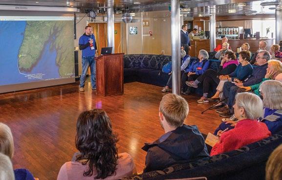 During and after lunch, the ship moves to another destination. You can rest or take in whatever educational programming we offer. Depending on the distance we must sail, it might be a few hours before we reach the next stop. Whenever conditions allow, we make at least one landing per day.
