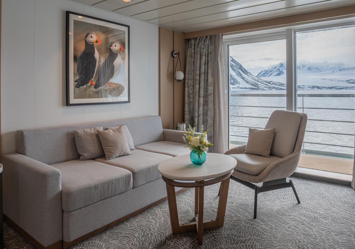 With nine different types of modern, exclusive cabins, all with unobstructed views of the pristine landscape, exploring the polar regions has never been so enjoyable. Disconnect from your daily life and be submerged in an otherworldly environment of comfort, lushness, and magnificence. Our cabins are designed for ultimate comfort and luxury and cater to all guests, regardless of whether they are travelling solo or with friends and family.