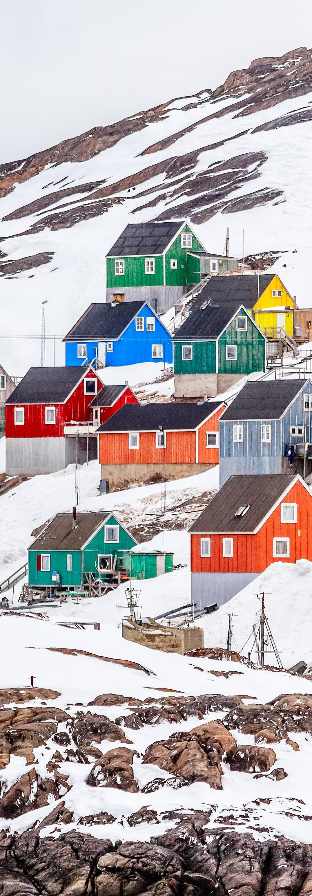 Discover the isolated Ittoqqortoormiit region at the entrance of Scoresby Sound, the world’s largest fjord network. Here, colourful homes dot the white landscape, and Inuit communities offer warm welcomes and authentic moments.