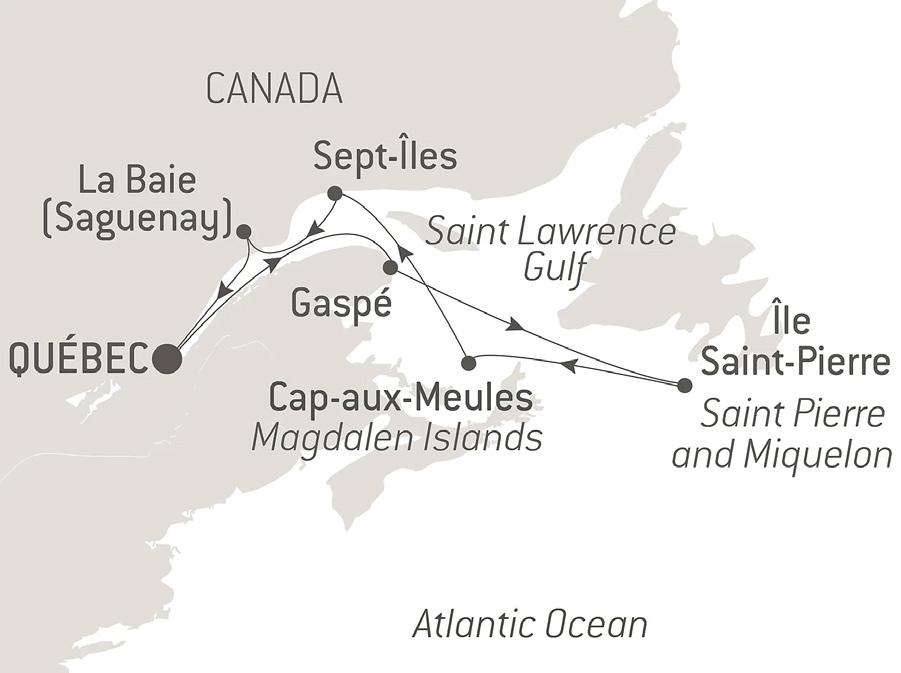 In the heart of the northern winter, set sail aboard Le Commandant Charcot, a welcoming cocoon, to discover the St. Lawrence River and its unique and enchanting wide open spaces. From Québéc to Saint-Pierre Island, via Gaspé, Grindstone Cape, Saguenay and Sept-Îles, cruise on the mighty waters of this body of water and admire the changing landscapes where nature reigns supreme.