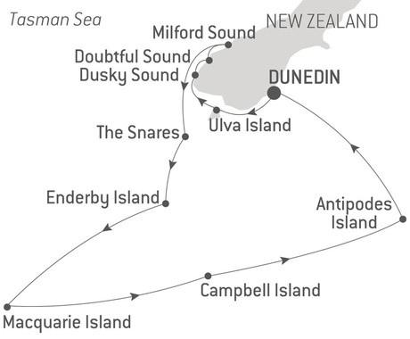 DAY14:AtSea.Relaxonboard. DAY15:Dunedin.DisembarkinDunedin, sayingfarewelltotheexpeditionteamand fellowpassengers.