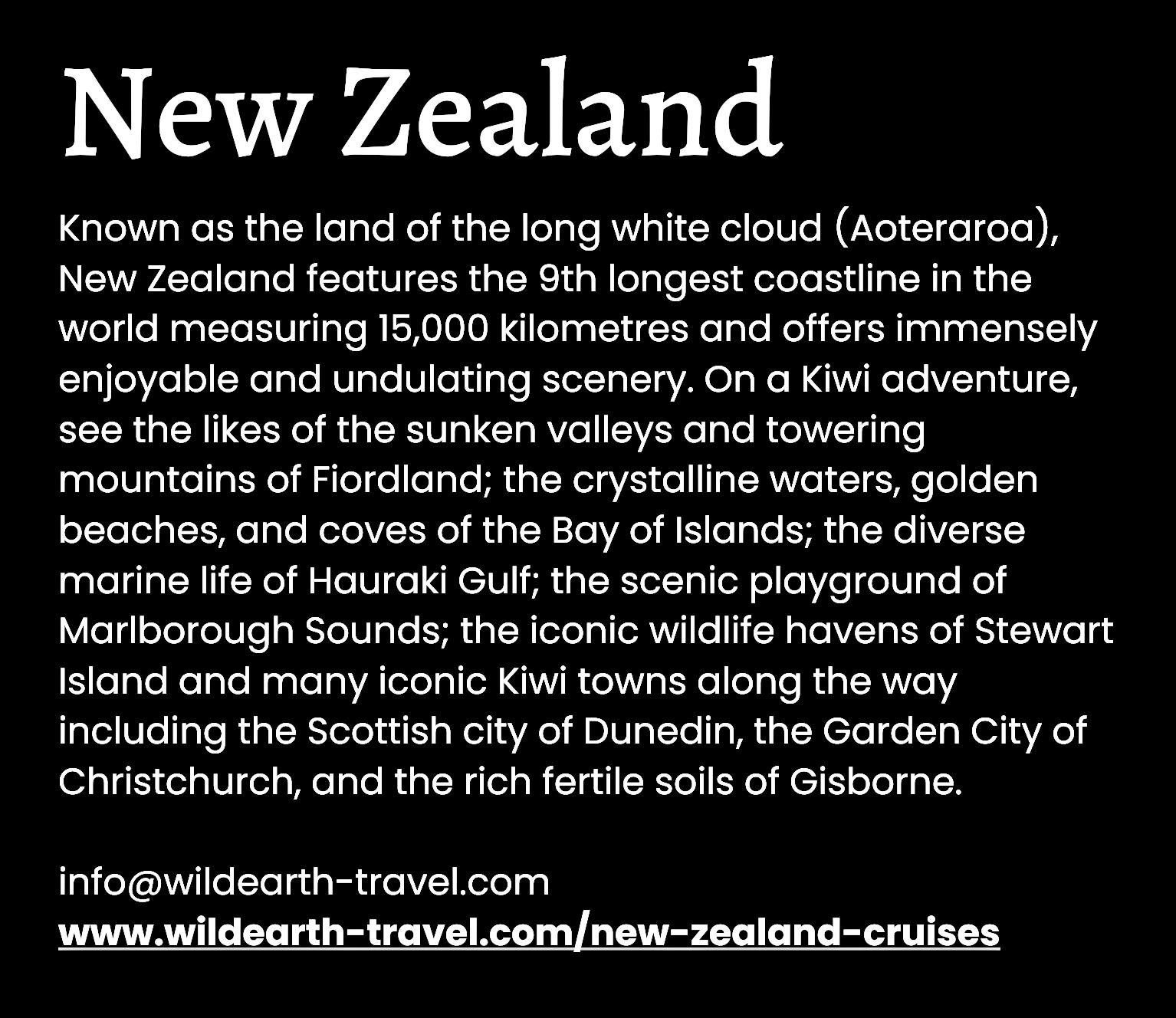 info@wildearth-travel.com www.wildearth-travel.com/fiordland-stewart-island-cruises