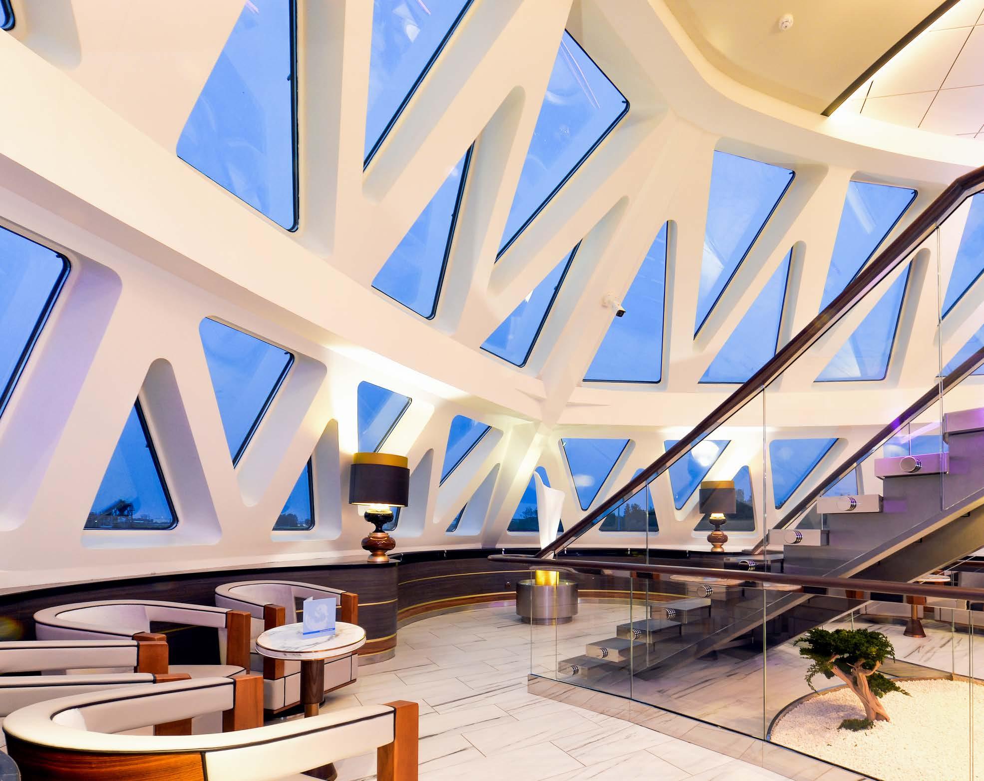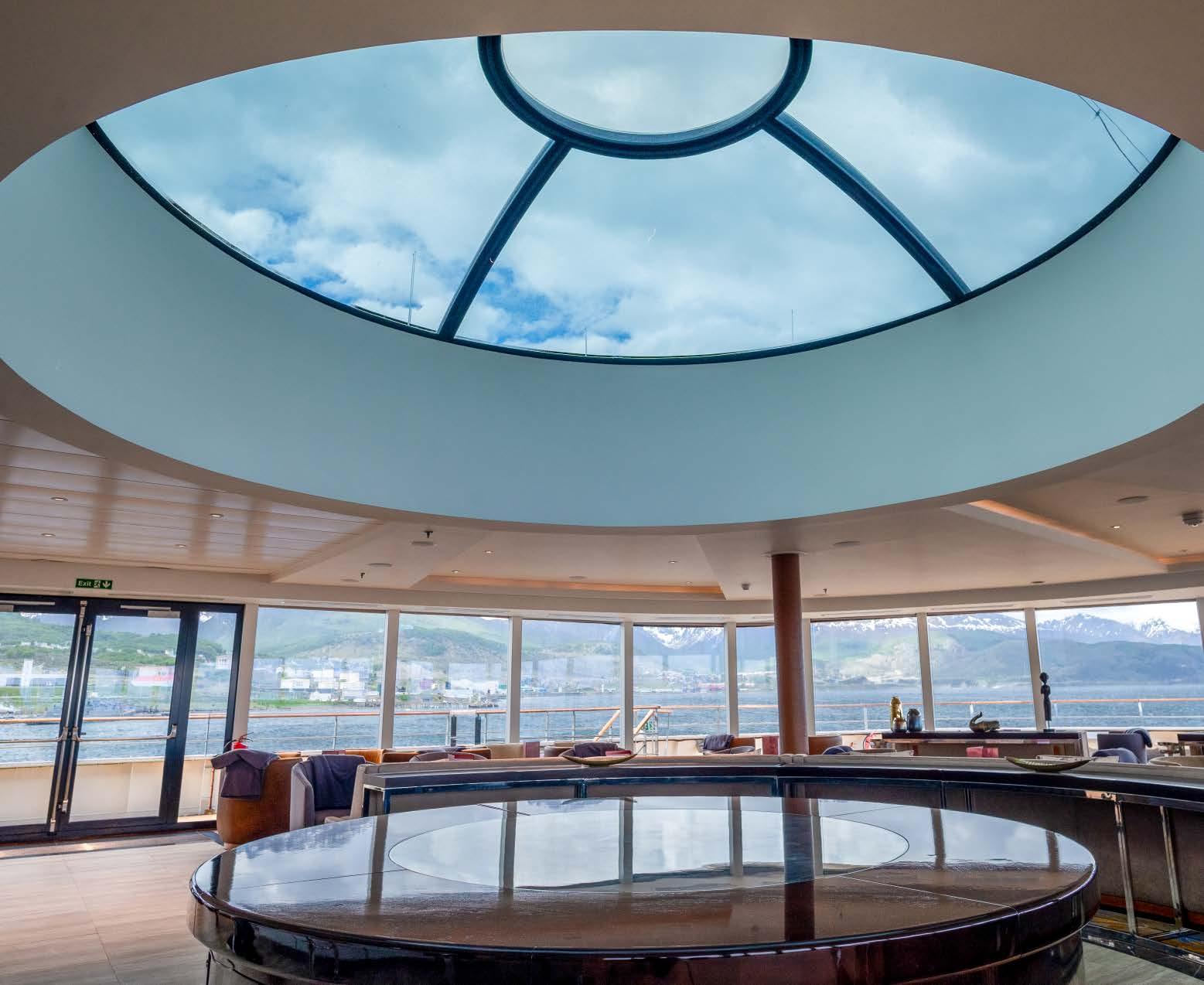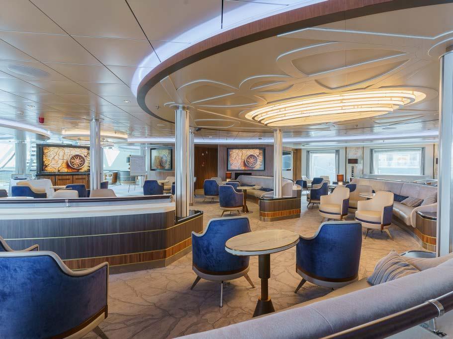 Our small vessels are designed with comfortable public spaces to meet and mingle. Lounges, presentation theaters (some with small tables and chairs), bars, library, and viewing spaces on the deck nurture spontaneous conversations.