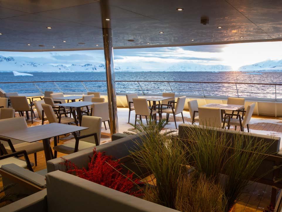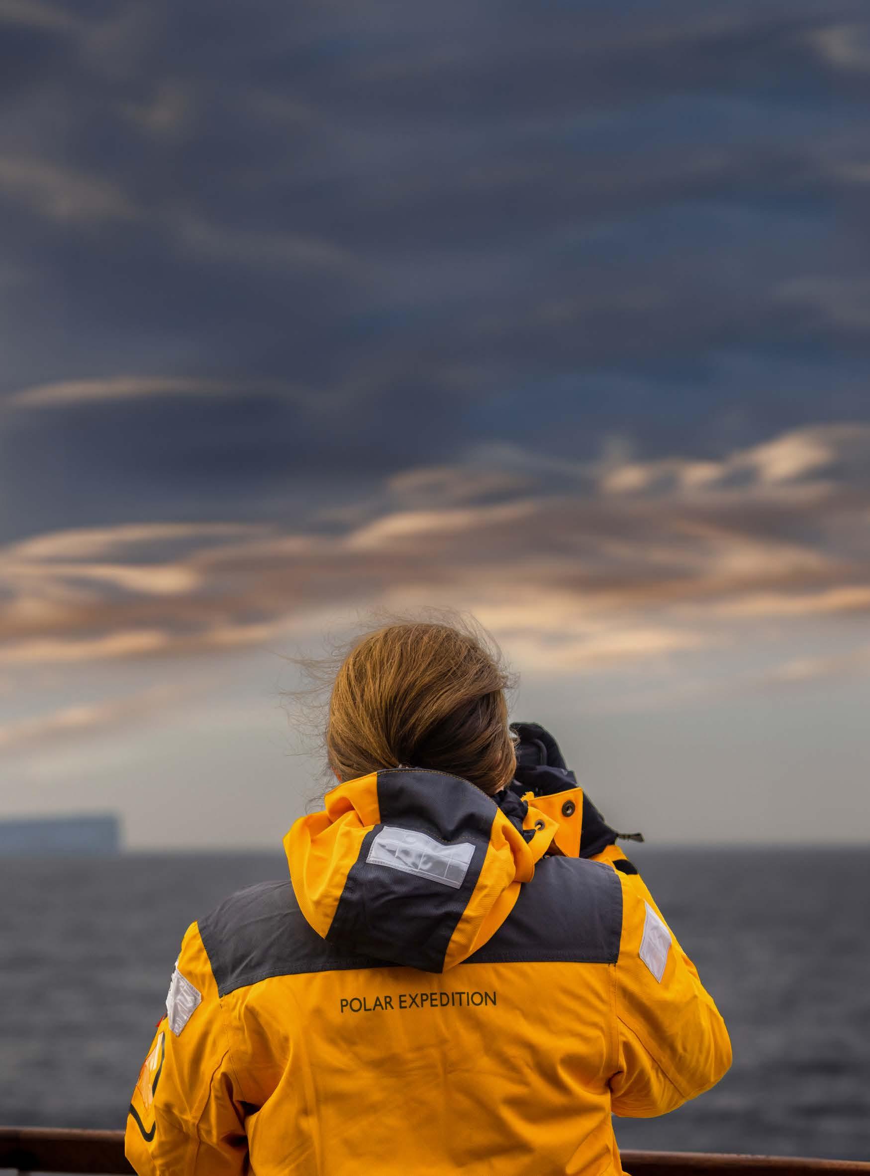 Advice to polar travelers: “Head to the outer decks after dinner to take an evening constitutional. There’s no better place than the Polar Regions to take some time and reflect on the serene beauty you’ve witnessed that day, as well as contemplate the lifechanging moments you’re experiencing. You never know what you might catch sight of—the majesty of the northern lights or a sighting of some wildlife.”