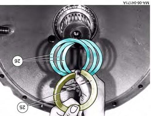 56. Select the thickness of shims (26) to allow assembly of the split ring (25) by tapping lightly with a hammer.