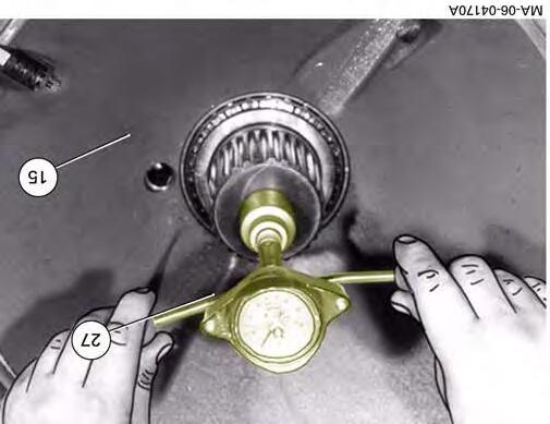 48. Support the housing (15). The axle shaft journal clearance should be minimal.