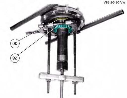 30. Take out the split ring (25) from the groove in the axle shaft (31).