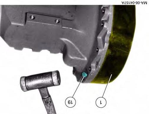 16. Unscrew the cylindrical screws (19) by about 10mm and knock out the ring gear (1) with a mallet.