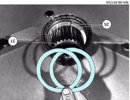 26. Fit one or two shims (ref. X 534.739.501) (individual thickness: 1 mm) on the bearing of the axle shaft (31).