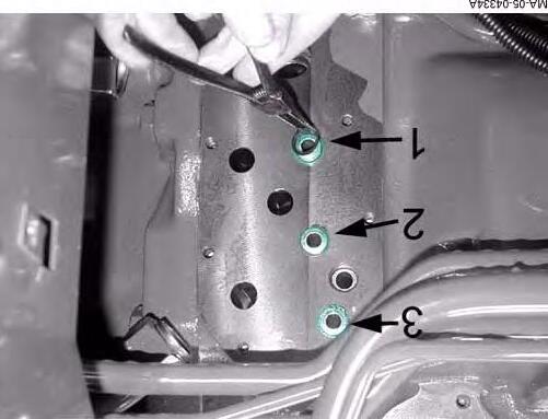 10. In place of the 2 two CHC screws, screw in 2 threaded screws to release the rear axle drive unit.