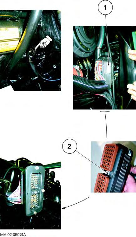 -screw(2) of the connector(1) on the main harness (Perkins EEM engine) (Fig.19 and Fig.26) to a torque of 2.82–3.15Nm.