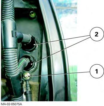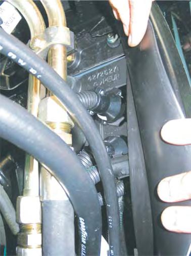 -The lubrication pipes/hoses (1) located on the cab front firewall (Fig.3). These pipes/hoses allow for oil flowing between the cooler and the rear axle right-hand hydraulic cover;