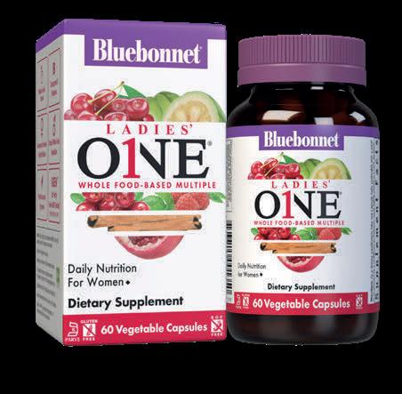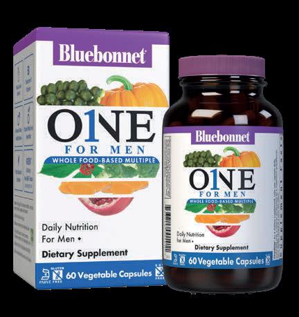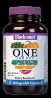 Bluebonnet’s Ladies’ ONE® & ONE for Men multiples deliver essential nutrients at potencies based on current science and meet FDA’s most updated recommended dail y val ues (DV ). They contain over 25 cutting-edge ingredients like coenzyme B vitamins, vitamin E from sunflower oil, bone-building vitamin K2 and bioavailable Albion chelated minerals in just ONE easy-to-swallow vegetable capsule pe r da y.