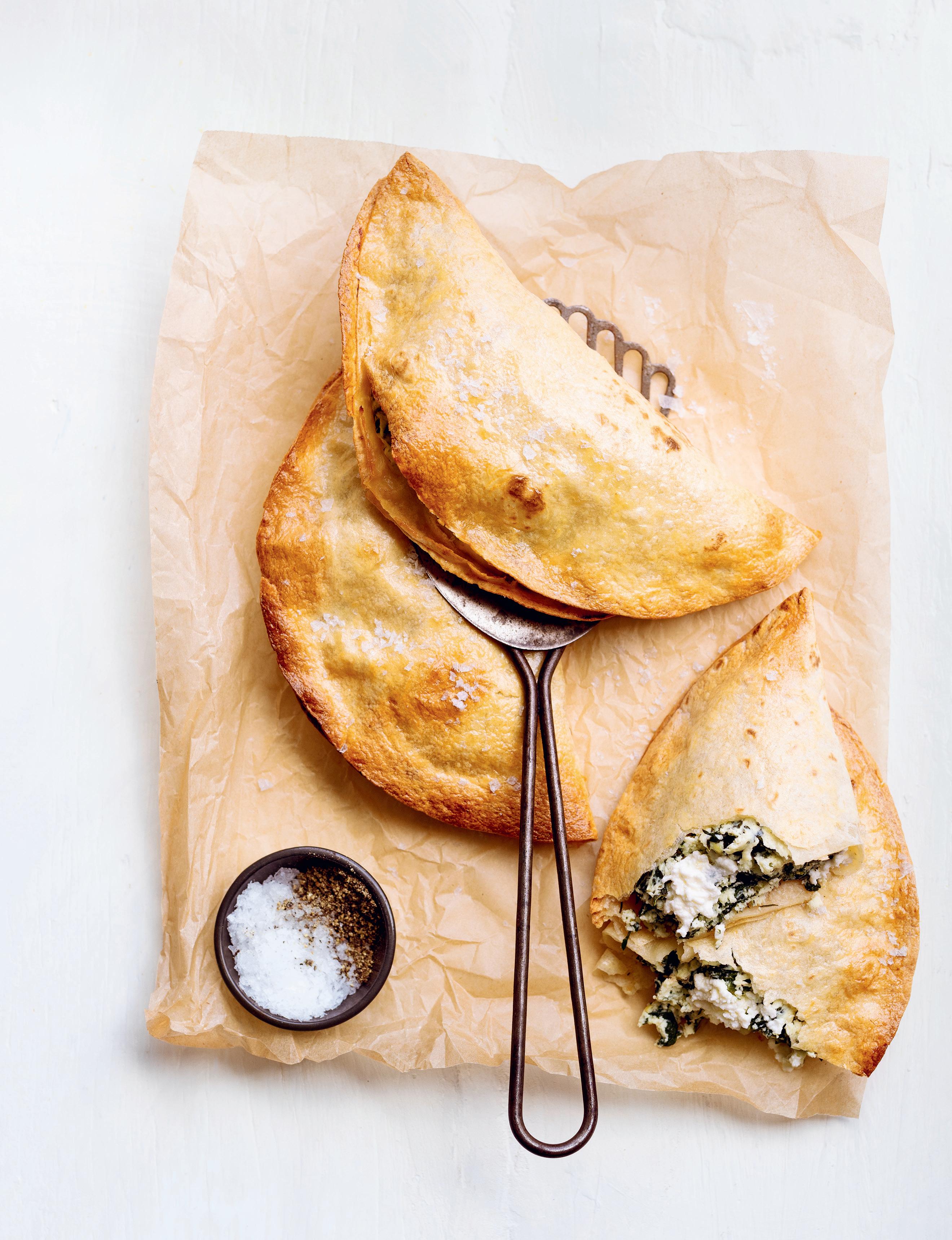 Kitchen Note: These crisp and no-fuss pies have a tasty, creamy, and cheesy filling. Swapping pastry for tortillas is a genius game changer, and the potential to switch up the flavors to suit you and your family (or what’s in the fridge) is even better. Try cooked chicken mixed with sour cream and chives for an almost-instant chicken pie. Consider chunks of roasted pumpkin, semi sundried tomatoes, and feta . . . let your imagination run wild!
