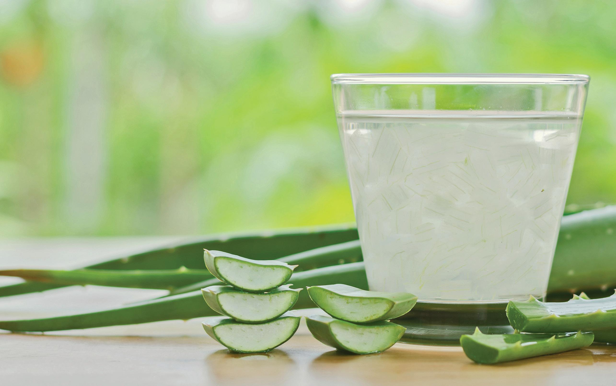 With its mild taste, aloe vera juice can be consumed by itself or mixed into fruit juice or your favorite smoothie. A general dose is up to 8 ounces per day of juice.