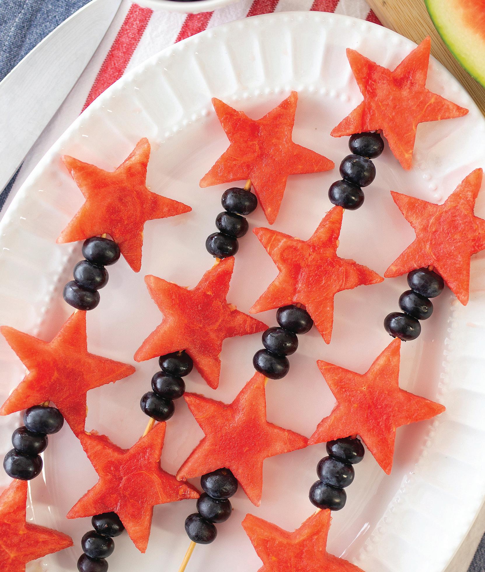 And fire up the grill for a Fourth of July cookout! We have recipes, beginning on page 12, to enhance the happy memories of your backyard barbecue. Try the lemon and herb marinated chicken thighs, surrounded by yummy takes on potato salad and a Dijon three bean salad, and finish with skewers of fresh fruit.