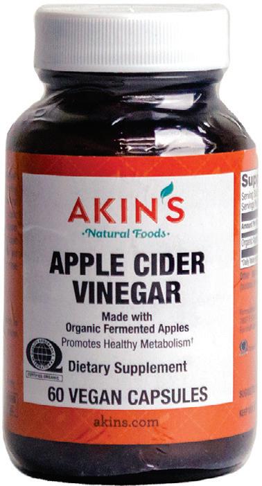 Akin’s Apple Cider Vinegar Promotes healthy metabolism.* Supports healthy blood sugar metabolism, cleansing and more.* Made with organic fermented apples, convenient capsule form.