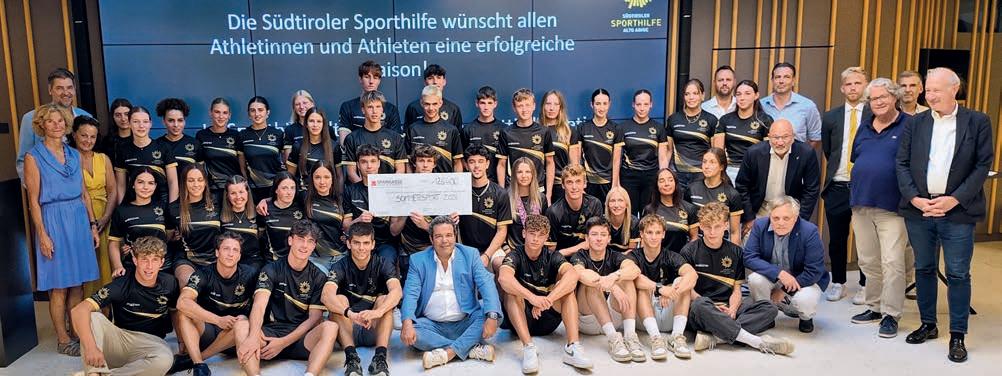 Auch HGV-LandesausschussmitgliedHelmut TauberundCONI-LandespräsidentAlex Tabarelliwaren vorOrtundwürdigtendie BedeutungderSporthilfe fürden gesamtenSüdtiroler Sport.„Esistbewundernswert,wieihrAthletinnen und Athleten als Menschen wachst–wieihrSprachen lernt,mitanderen Kulturenin Kontakttretetund respektvollmiteinander umgeht.Dasist vonenormerBedeutung,unddarauf könntihr alle stolzsein“, sagteAlex Tabarelli. Auch Helmut Tauber vomHGV unterstrich:„DieSporthilfe sorgtdafür,dassderSportsgeistinunseremLandlebendig bleibt.Siegibtjenen eineChance,dieaufUnterstützungangewiesensind. Dasistsehrwichtig, weil damitjungeMenschenihre Ziele verfolgen können.“ DochdieSporthilfesteht längstnicht nurfürfinanzielle Förderung. „Wir sehen