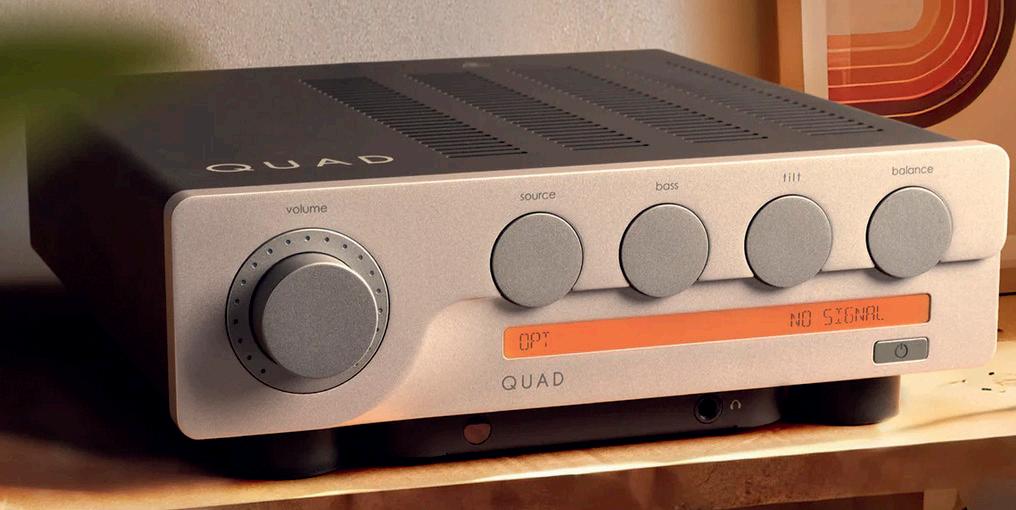 Nakon lansiranja modela 33 i 303, Quad je predstavio integrisano pojačalo sa oznakom 3. Novitet predstavlja svojevrstan omaž Quadovom prepoznatljivom dizajnu, a britanska kompanija navodi da se ispod poklopca nalazi najsavremenija tehnologija. Amplifikacija u klasi AB pruža 65 vati na osam oma i 100 vati na četiri oma, dok se u napajanju nalaze torusni transformator od 235 volt-ampera i banka od 30.000 mikrofarada. Uprkos smanjenom gabaritu i širini od samo 30 centimetara, Quad 3 nudi obilje opcija, koje predvodi digitalna sekcija s konverterskim kolom ESS ES9038Q2M i podrškom za PCM do 768 kiloherca i DSD512. Blutut 5.1 podržava aptX HD, dok je za pokretanje slušalica predviđena zasebna amplifikacija. Ljubitelji vinila, naravno, nisu izostavljeni, pa je na raspolaganju integrisana MM gramofonska sekcija, s preciznim RIAA podešavanjem i niskim šumom. Za povezivanje su predviđena tri analogna RCA ulaza (uključujući gramofon) i jedan izlaz za dodavanje eksternog snagaša. Digitalni izvori mogu se povezati preko koaksijalnog, optičkog, USB-B i HDMI ARC priključka, a zvučnički terminali omogućuju bi-wiring. Preporučena cena za novi Quad 3 iznosi oko 1.500 evra. i www.quad-hifi.co.uk M 1.500 €