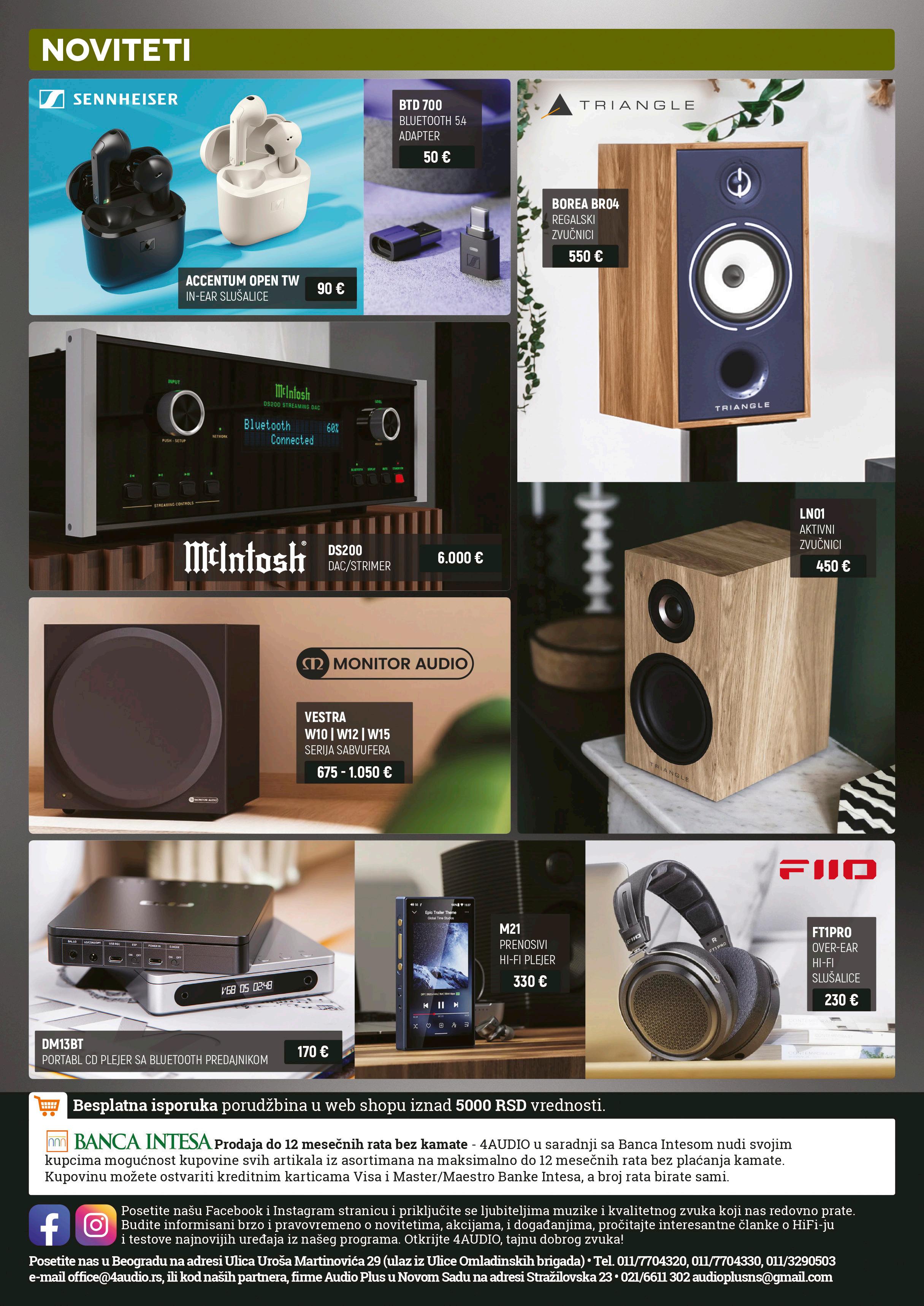 Što se tiče tekstova u ovom broju, donosimo nekoliko ekskluziviteta – test novih slušalica Sennheiser Accentum Open i Bowers & Wilkins Px7 S3, zatim novi uređaj iz kompanije FiiO pod nazivom K17. Za audiofile smo pripremili testove Monitor Audio Gold 300 6G zvučnika, zatim pojačala Marantz Model 60n i test Atlas kablova. Ako ste fan kućnog bioskopa, onda će vam biti zanimljivi testovi Bose Smart Soundbara, kao i Hisense HT Saturn kompleta.