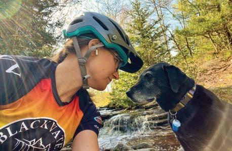 My pup and travel buddy, Hazel, follows my wheel with gusto on mountain bike rides through the forests surrounding Davis, West Virginia.