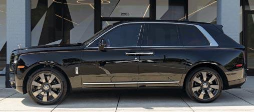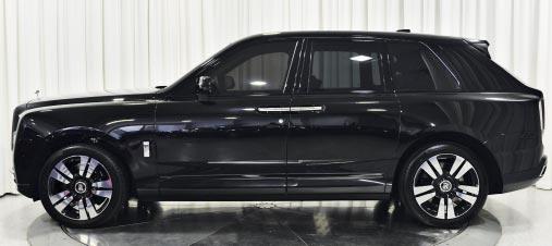 2023 Rolls Royce Cullinan- Black diamond over mandarin leather, 563 hp 6.75 liter twin-turbo V12, 8-speed auto trans, AWD, 500 miles, woven interior trim in black, RR embroidered to headrests in black stitch, premium 22” wheels, exterior body-line pinstriping on either side of the vehicle. $439,900 Stock #PPU217179 Tactical Fleet (972) 366-4078