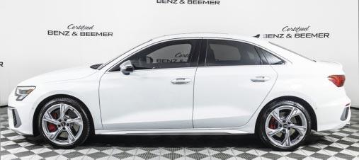 2023 Audi S3 Premium Plus- White over black leather, turbocharged 4 Cyl, 7-speed auto trans, quattro AWD, 7,382 miles, S sport package; sport suspension, red calipers, adaptive cruise control, Bang and Olufsen premium audio, moonroof, illuminated entry. $48,800 Stock #21251 Certified Benz & Beemer (844) 568-1362