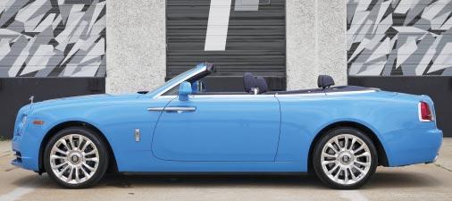 2019 Rolls-Royce Dawn- Arctic white over seashell/ black leather, twinturbo 6.6 liter V12, automatic trans, 19,097 miles, red interior piping, RR embroidered to all headrests in red, piano black interior veneers, power heated & cooled seats, parking assist w/ camera, 4-zone climate control. $263,999