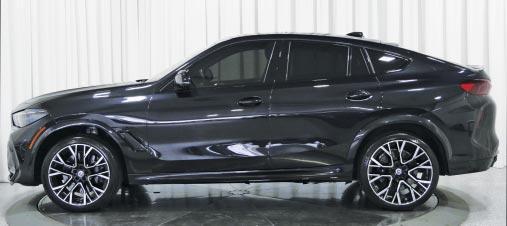 2023 BMW X6 M Competition - Black Sapphire Metallic over black leather interior, 4.4L twin-turbo V8 with 600 HP & 553 ft-lbs torque, 8-speed auto trans, 4,997 miles, Competition pkg, Driving Assistance Professional pkg, Executive pkg, Bowers and Wilkins diamond surround sound, panoramic glass roof, carbon fiber interior trim. $108,900 Stock #B25090 Marshall Goldman Beverly Hills (424) 500-5019