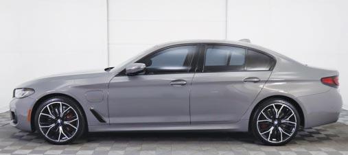 2021 BMW 530e iPerformance- Gray over beige/ black leather interior, 30,062 miles, multi-function M-sport steering wheel w/ paddle shifters, parking assist w/ surround view camera, moonroof, power heated & cooled front seats w/ memory, M-sport premium alloy wheels, red brake calipers, harman/kardon premium audio. $39,500 Stock #CONSBW530E Scottsdale Ferrari-Maserati (888) 964-6056