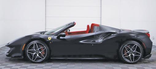 2017 Ferrari 488 Spider- Grigio scuro over nero leather, twin-turbo 3.9 liter V8, 7-speed F1 auto trans, 12,985 miles, 20/21” HRE wheels, Novitec Sport springs, adaptive headlight system, lots of carbon fiber, horse embroidered to headrests, suspension lifter, gallo modena brake calipers, gallo seat belts. $267,900 Stock #PH0220803 Tactical Fleet (972) 366-4078