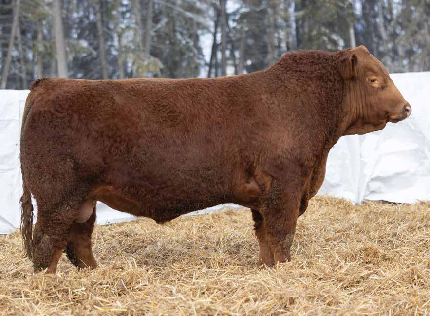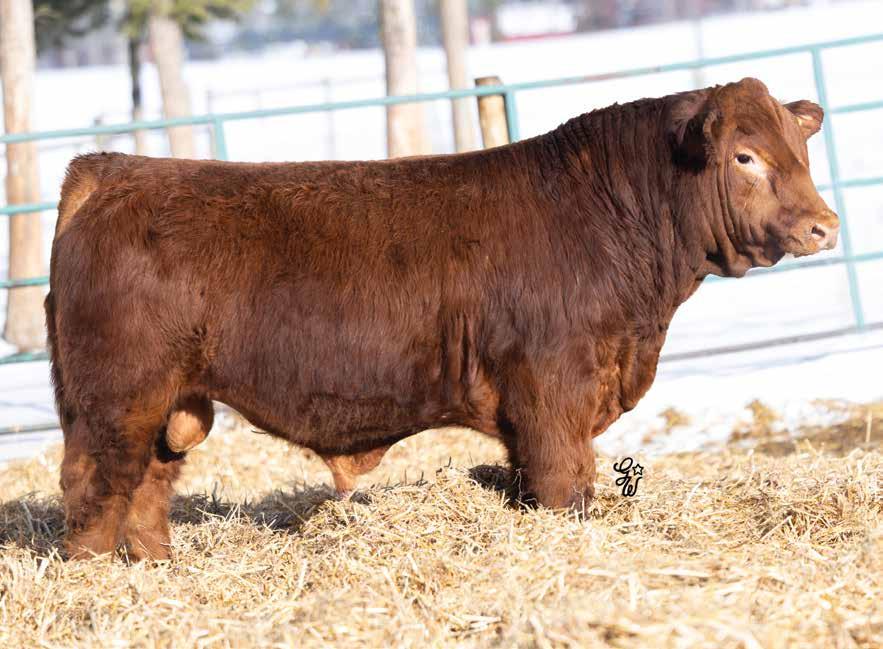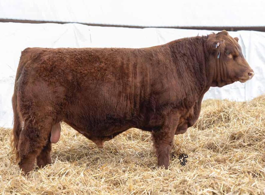 Selling ½ interest & full possession. Herdsire here folks. This is a bull we used on some of our best cows last year and the results are very exciting. We used him for his length of body, hip shape, muscle, performance, and docility. The babies we have on the ground are stout, vigorous, and growing well – we are very excited to watch them develop. Now, we are offering you the opportunity to invest in this breeding piece that will propel your program forward! His maternal brother sells in the yearling section as LOT 19, so check out the maternal consistency here.