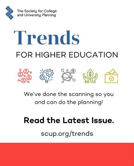 I’m looking forward to attending the Society for College and University Planning’s (SCUP) 2024 North Atlantic Regional Conference on March 24-26 in Boston. For this issue, I caught up with Michael A. Nieminen, FAIA, principal at Kliment Halsband Architects, a Perkins Eastman Studio, and the 20232026 council chair of SCUP North Atlantic Region, on what key initiatives he is prioritizing to enhance integrated planning within the higher education landscape, and how he is ensuring that SCUP’s offerings align with the evolving needs of the higher ed community in the North Atlantic region. Nieminen says, “Topics of particular relevance include accelerated movement toward zero carbon emissions, master planning, student life, workplace, faculty engagement, and