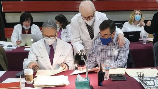 DR. MOHAMED ZIAD SINNO, DR. JOSEPH MAREK, AND DR. FRANK ZIMMERMAN READ AND CONSULT ON THE ECG’S DURING A YH4L SCREENING.