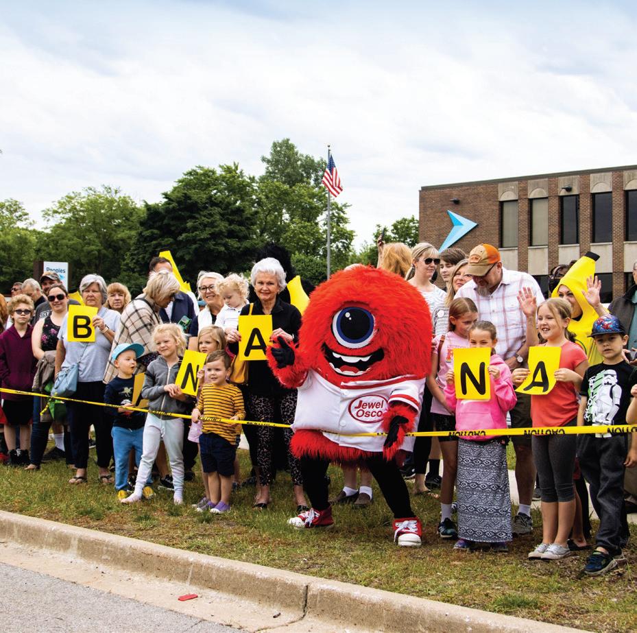 In June, the produce company Fresh Del Monte and the Jewel-Osco located on East Ogden Avenue in Westmont, finally broke the world record for “World’s Largest Fruit Display.” The display, which took three days to create and was 118 feet wide and 11 feet high, contained more than 75,000 pounds of bananas. In total, 211,200 Del Monte bananas were used. An official Guinness World Record adjudicator was present to verify and confirm the new record. Upon conclusion of the event, the bananas were given away for free to customers.