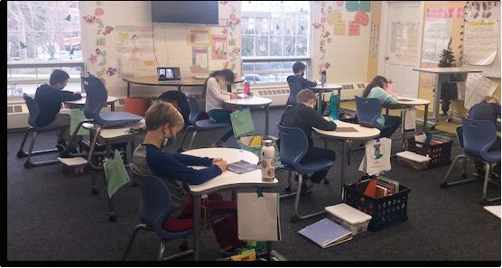 “Beyond brotherly antics during remote learning, Joseph (7th grade) and Zach (5th grade) learned how to build a gaming computer with help and guidance from Nolan Brezina, a senior at DGN and national honor society member.”