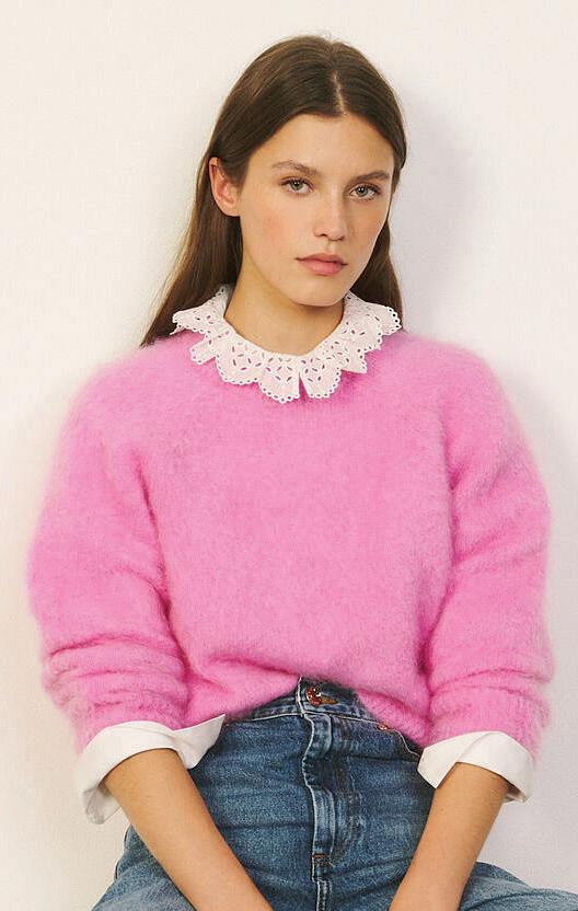 Dolce & Gabbana Cicily bag in dauphine calfskin, $1,695. dolcegabbana.com THINK PINK. Mohair knit sweater, $340. us.sandro-paris.com BLUE. Jane blazer, $282. revolve.com MoraBrand lavender pants suit, $135. etsy.comORANGE