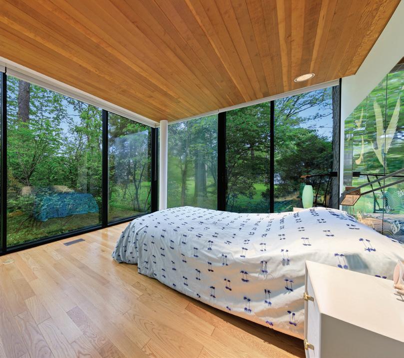 Boasting floor-to-ceiling glass walls and windows, bright skylights and newlyrefinished white-oak hardwood floors, this hidden gem is nestled among a heavily-forested piece of land on a familyfriendly street.