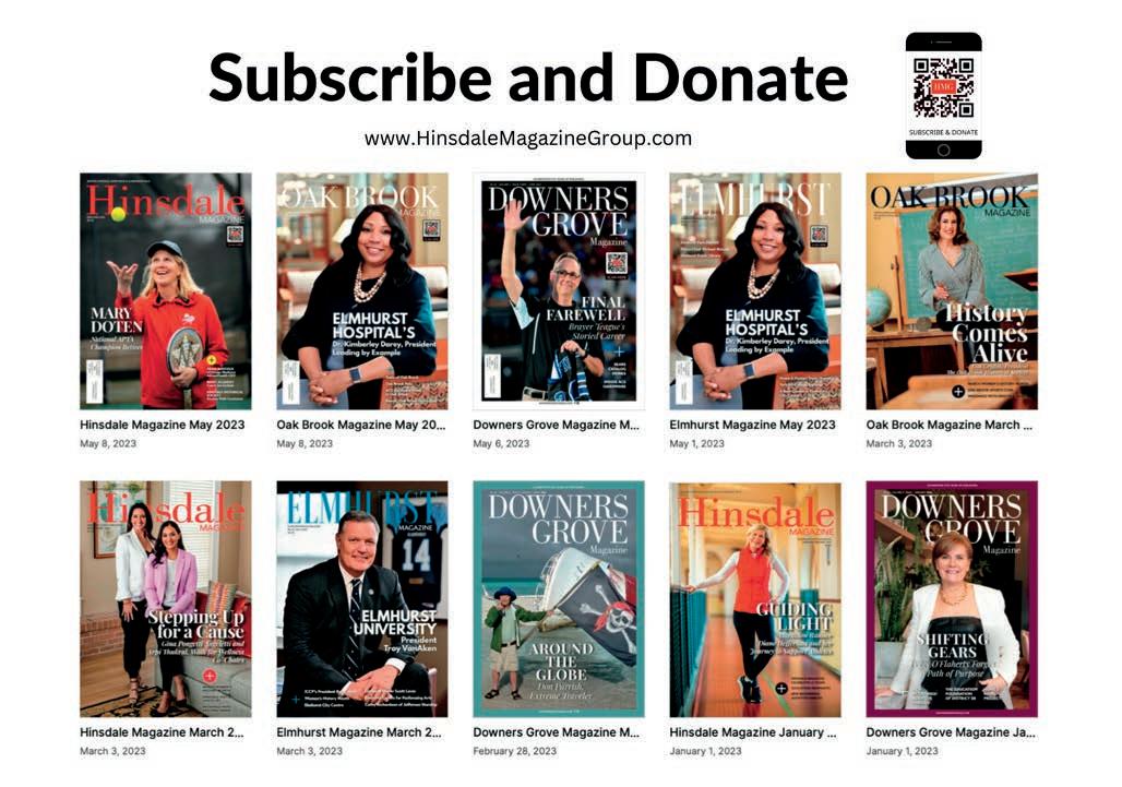 Hinsdale Magazine Group Elmhurst Magazine 107 W. First Street Elmhurst, IL 60126 ElmhurstMagazine.com Scan to Subscribe