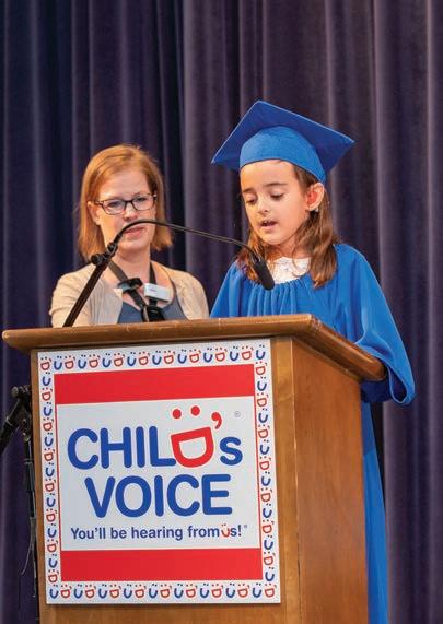 Child’s Voice is set up as two entitiesan early intervention program, for children from birth to 3 years old, followed by a school-age program for students aged 3 to 8 years old. Early intervention outreach happens in the home until a child is a year-anda-half old, at which point they are eligible to attend the Wood Dale campus. A satellite site in Roscoe Village hosts the same services for families closer to the city. Currently, about 70 zip codes are served through the combination of the two programs.